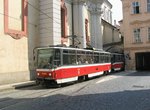 Any trip to Prague to tram-fan wouldn't be complete without visiting some of the several bridges across the Vltava that carry trams (there's eight of them!). The photos below show two bridges. The Manesuv Most gives some great photo opportunities with the Prague Castle and St. Vitus' Cathedral up on the hill in the distance. There's also some other interesting photo opportunities on the system, like a section of gantlet trackage that runs through a building, and several locations with interesting buildings-- like churches-- providing scenic backdrops. There's even a couple of grand unions with trams going every which way, including one (at Palmovka) which is a grand union with no automobile traffic.