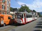 Since RHB operates on trackage where local routes are also present, service is usually hourly. Base service is provided by 1994/95-built Duewag ET6Ns, similar to vehicles purchased simultaneous for Ludwigshafen and Mannheim.