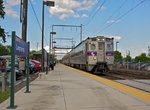 Haverford is passed and Bryn Mawr is next. As noted, the station was once a busier place with trains calling here on transit-like schedules. A restaurant/cafe occupies part of the inbound brick station building. An interlocking tower is at the west end of the stop, but it is no longer in service. Haverford marks the start of college towns served by the line, which help to keep intermediate station patronage high even today.