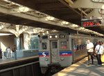 After departing Suburban Station, the line curves a little bit to the north and crosses over the Broad St. Subway tracks. We then immediately arrive at Market East Station. Market East is part of a large complex, which includes the Pennsylvania Convention Center, the Gallery Mall, the Philadelphia Marriott Hotel, the Hard Rock Cafe, Reading Terminal Market, and the 11th St. Station of the Market-Frankford Subway. There is also a connection to PATCO and the Broad St. Line Ridge Spur. The station itself is located underground, but has several windows on the roof (skylights), giving the station a very airy feeling. There are two high island platforms and four tracks. Each platform has one end labeled "A" and one labeled "B", to allow two trains to load at one time from one platform. There are elevators and escalators up to a huge mezzanine with ticket windows, waiting rooms, and some shops and restaurants. Market East Station is fairly new and wheelchair accessible. This is the last underground station.
