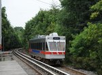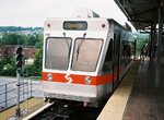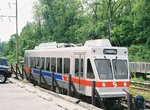 Route 100, also known as the Norristown High Speed Line (NHSL), or locally still as the "P & W" (from its heritage as the privately owned Philadelphia and Western Railway), is a unique line which has the elements of heavy rail, light rail and commuter rail all wrapped into one. It has the high-level platforms and third-rail contact typical of heavy rail lines, with the closely-spaced stops, on-board fare collection and single-car operation (generally) found on light rail lines, and the general peak direction traffic and suburban setting one would associate with commuter rail.