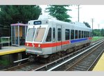 Route 100 begins at the 69th Street Terminal, where transfers can be made from a host of bus routes in addition to the SEPTA Market-Frankford Elevated and SEPTA Rt. 101/102: Media-Sharon Hill Line. It has a modern 3-track 4-platform terminal at the north side of the complex, adjacent to the El yards. Your typical tour begins on a single-car (two-car trains can be found in peak hours) Adtranz-built "train", one of the 26 delivered in 1994-96. Your run leaves the terminal through a maze of switches, crosses over the leads to the El yards and enters the Victory Avenue complex. A bus garage is on your right, with the Route 100 shops and yards on the left as you proceed from the terminal. A short "platform" exists here for train operators and crews to shuttle back and forth between the shops and the terminal. Some work equipment can usually be spotted in the small yard next to the shop building. When the Bullets and Liberty Liners roamed the line a short time ago, these could also be found resting in the yard. Now, many of these are enjoying retirement in traction museums.