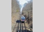 After Gulph Mills, the line is back to grade and you enter the speedway portion of the line - almost all straight through to King Manor. Hughes Park stop, lightly used, is usually a blur as trains floor it through this segment. Just past Hughes Park, the ex-Pennsylvania Railroad Trenton Cutoff freight line and the Pennsylvania Turnpike pass over route 100.