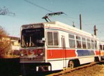 Your car swings around Terminal Square, passing several shops in the once thriving but now struggling 69th Street shopping area. Shortly, your car parallels Garrett Road. moving from center median right of way to the west side of Garrett Road. After a couple of stops, your car passes Beverly Hills (not the one of TV fame) and vaults across a bridge which spans a former Pennsylvania Railroad spur (the spur served the carbarn at Llanerch, and many of the former rolling stock on the line were delivered on this rail branch). Back down to grade, you approach Lansdowne Avenue, a fairly significant intersection. Separate loading platforms exist here to serve three nearby high schools, which still rate a couple of special runs (although nowhere near the number of trips which ran several years back). The line curves slightly away from Garrett Road but continues to parallel it for a few more stops until Shadeland Avenue is reached.