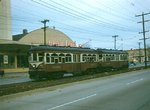 Your ride starts at 69th Street Terminal, and your car leaves the Terminal boarding area, crosses the busy intersection of Victory Avenue, West Chester Pike (Market Street) and Terminal Square, and passes through a maze of switches in a small yard before curving onto Terminal Square. In the median of West Chester Pike, another small yard, a part of the former line to Llanerch and Ardmore, stores a few cars in off-peak hours. The carbarn for the line was in Llanerch until 1971 when it was moved into the Market-Frankford el shops at 69th Street. A spur track from the loading area provides access for cars going to and coming from the shops.