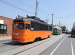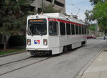 Service is operated by 112 single-ended Kawasaki LRV cars built in 1982. They are numbered 9000-9111. They are very similar to the PCC cars they replaced.
