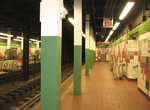 Leaving 30th, your car climbs above the el tracks, past the site of a March 1990 derailment, to a separate subway alignment. You curve left and immediately enter 33rd St - Drexel University station. This station resembles 22nd street, however the street entrance has been rehabbed. The entrances are now sort of kiosks, and the sides have blue and green tile.