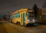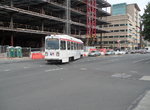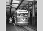 Out of 37th, your car speeds through the tunnel until daylight can be seen ahead, at the 40th Street Portal. Once the portal is reached, Routes 11, 13 and 36 cars take the switch to the left, with Route 34 turning to the right. Before the portal area trackage was realigned in 1983 (to allow direct turnarounds in each direction, as well as sidings for storage), tracks came to a "T" configuration, then split, which limited turnbacks in both directions. Before the late 70's, 40th Street also crossed the tracks just outside the portal, which led to some traffic difficulties. There are three separate low platforms here, one each for Route 34 Outbound, Routes 11, 13, and 36 Outbound, and all lines inbound to City Hall.