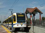 Sacramento CAF LRV #239 approaching Sacramento Valley Station. Photo by Peter Ehrlich, May 2008.