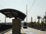 The south line begins at Bee Junction (18th and R Streets) and curves southward to meet the UP. Inbound South Line trains must pass under the East Line's Bee Bridge, which was double-tracked as part of the project. The first station on the line is Broadway, which serves Auto Zone. This is a walk-in station with spectacular triangular arches and a matching canopy covering the outbound track. A center platform serves inbound trains, while outbound trains load onto a side platform. This is the pattern for most of the stations on the new line.