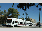 San Jose VTA Kinki-Sharyo LRV no. 917 leaving Convention Center Station inbound. Photo by Peter Ehrlich, October 2006.