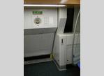 The trains are unitized six-car sets, with walk-through articulation. Each car has four doors per side, longitudinal seats (62 per car), and ceiling handholds along the center of the car. Yes, one can still be a straphanger in Singapore. The trainsets use AC propulsion as denoted by the telltale multi-pitch whine. Station stops are announced automatically, using a woman's voice that has a British accent. She even throws in "mind the gap!" for good measure. Each car has six plasma TV screens that show commercial messages; station information scrolls along the bottom. There are also two ceiling-mounted LCD displays that also show station information.