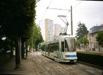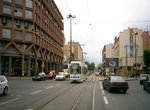 In 1991, the route was lengthened, and phaseout of the PCCs began with the receipt of 15 Alstom/Vevey single-end, partial low-floor streetcars similar to the double-end TFS trams delivered to Grenoble, Paris and Rouen. Complete retirement of the PCCs was achieved in 1998 with 20 additional Alstom/Vevey trams. There is talk of building more tram lines. Interestingly, the new Alstom trams used trolley poles initially, but were converted to pantograph operation in September 1998 after the PCCs were withdrawn.