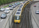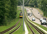 The suburb Kaltental can be reached from three light rail stops. After Waldeck station the tracks change from central onto side reservation.
