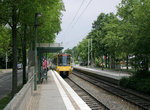 A new section with two stations is expected to be opened on July 16, 2005. Behind the Hauptfriedhof station the trains will run in a tunnel to cross under a cemetery. The two-track tunnel is built in the mine-tunneling shotcrete construction. Just at the end of the tunnel there is the Steinhaldenfeld station. A staircase and an escalator connect the island platform with the surface level at the south end. The street inclines and therefore the platform can be reached by level-crossings at the north end of the station.