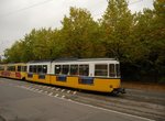 The former tram line 2 was converted to Stadtbahn operation in two parts. The first section Hauptfriedhof -- Berliner Platz started on June 22, 2002. At that time the whole tram line was closed. Until the opening of the other part (Berliner Platz to Hölderlinplatz) on December 14, 2002 the light rail vehicles used the city-loop (Staatsgalerie -- Charlottenplatz -- Berliner Platz -- Hauptbahnhof -- Staatsgalerie) to reverse.