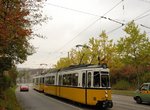 On Hölderlinstraße and Hegelstraße the light rails run in the street with mixed traffic. The former trams used the Hölderlinstraße only in the direction toward Hölderlinplatz, returning via the Kornbergstraße. The next stop Russische Kirche with island platform lies in a steep inclination in the middle of the Hegelstraße.