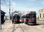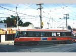The CLRVs went into service between 1978 and 1980, but you would never know it to ride them. Most of them have been repainted within the last few years and are looking great. The ALRVs went into service between 1987-1989 - but they look older than the CLRVs. Some are now being repainted - but most are looking tired and they are not as smooth to ride as the CLRVs. The last PCCs were taken out of revenue service in December 1995 - but 4500 and 4549 are still available for charters.
