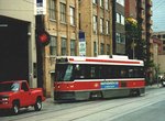 July 23, 2000 was the first day of revenue service on the new 509-Harbourfront line. The 509 starts at Union Station, runs south through the Bay Street tunnel to Queens Quay, and west along Queens Quay to Bathurst. It jogs up Bathurst to Fleet and along Fleet to the Exhibition. The part from Union Station to Queens Quay and Spadina is shared with the 510-Spadina route and the part between Fleet and Bathurst and the Exhibition is shared with 511-Bathurst. Only half a mile of connecting track is new to the streetcar network. This allows a direct ride, almost exclusively along private right of way, from Union Station to the Exhibition.