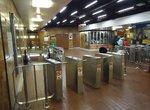 4 separate fare controls lead to one large mezzanine; one is a staffed line of low turnstiles at the south end, one is an unstaffed line of full-height revolving turnstiles at the far north end, and the other two are single wheelchair accessible gates surrounding elevators to each platform. The fare-paid zones by the elevators are not connected, meaning that there is no paid crossover between platforms for customers requiring an elevator.