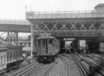 The 9th Ave. El would extend all the way to 155th Street and terminate adjacent to the southern terminal of the New York and Northern Railroad (later the New York Central's Putnam Division). This junction would allow suburbanites an easy transfer to the 9th Ave El for points in downtown Manhattan. Eventually, the Polo Grounds would be built at that location as well. Behind the Polo Grounds was the 159th Street Yard, the largest elevated yard of the Manhattan Elevated Railroad Company.