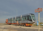 Toulouse Citadis Type 302 tram on Line E between Arènes & Zenith. Photo by Thierry Leleu, August 2010.