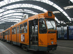 The 6-axle streamlined 2800-series trams were built in two groups in the late 1940s, totaling over 100 trams. The group beginning with tram 2851 is slightly longer than the low-numbered 2800s. Most of them are still in daily service. Despite their streamlined appearance, they have spur gears and make all the "right" traction noises associated with such technology. They run on lines 13, 15, 16 and 18, and extras operate on line 10.
