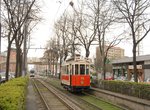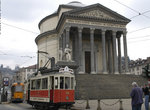 This rack railway is located in northeast Turin, across the Po River. Originally a cable tramway which opened in 1884, the route between Sassi and Superga, which is 3100 meters long and rises to 650 meters above sea level, was converted to electric traction and rack railway operation in 1934. Its cars have recently been completely rebuilt. On summer weekends, the cars pull original trailers from 1884. At the top of the mountain is the Superga Basilica, designed by Filippo Juvarra, and great views of Turin and the Italian Alps can be had.