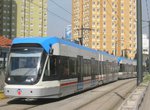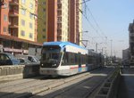 At Zeytinburnu terminal tram line 38 meets 51 (T2). Line 51 travels northwest for eight stops. This line uses High Floor ABB trams from 1989 - again coupled in two car sets. This line is much shorter and much much less crowded. This line runs partly on right of way and partly in mixed traffic using high level platforms at the stops. Again there are turnstiles and fare paid areas at all the stops.