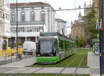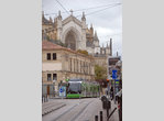 The tram project in Vitoria has been under discussion since 1996, but it was not until 23 December 2008 that the line opened, between Angulema and Lakuabizkarra. In March 2009, the second branch opened between Honduras and Abetxubo. The first branch was further extended to Ibaiondo. Now the network thus forms a 7.2km "Y" with branches entering the city center from the northwest. A journey on the Ibaiondo branch takes approximately 17 minutes end to end, and 20 on the Abetxuko branch. Each branch has 6 stations, with 6 more on the trunk. Funding of €100 million was provided to 65% by the Basque government whose seat is in Vitoria, and then equally between the municipality of Vitoria and the province of Alava. The rolling stock was built by CAF, in its factories in Irun and Beasain, and its green and gray livery is the same as the Eusko-tran in Bilbao. The trams have 5 sections carried on three trucks articulated. The fleet consists of 10 trams numbered 501-510. Each section of the tram is lettered (e.g. for tram 501, 501A (with front truck) 501B (without intermediate truck), 501C (with central truck and pantograph), 501D (without intermediate truck), and 501E (with front truck). The trams can accommodate 244 passengers with 52 seated, and their max speed is 50km/h (but restricted to 30km/h in the city). Service frequency is 15 minutes on the branches and every 7/8 minutes on the trunk line. A very clever system displays lights above the stations, indicating time in minutes for the next tram. Figures displaying alternately red for the city center tram, white for Abetxuko, and green for Ibaiondo terminus. The line is planned to be extended to the university and to the airport.