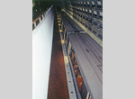 About a mile past Benning Road, the Blue line emerges from its tunnel and climbs onto an elevated structure, where it joins the Orange Line branch from New Carrollton. (See the WMATA Orange Line section for a tour of these stations.) The elevated runs along Benning Road, then it swings southwest, cutting through the parking lot of RFK Stadium before diving underground once again. From this point to Rosslyn Station in Virginia, the Blue and Orange Lines share the same track and stations.