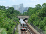 As we leave Downtown Largo, we go onto a bridge that is named for Decatur Trotter, a WMATA Board member and Maryland State Senator. The bridge takes us over the Capital Beltway and almost immediately descend into a shallow cut and cover tunnel. The residents in the area of the new line wanted minimal noise and disruption from the train, so WMATA built most of the extension in a very shallow cut and cover, about 12 feet underground. In some places, the train was essentially built at the level of the surface, but the tracks were built with walls around them and earth was piled on top of the "tunnel." The extension includes a total of 1,700 feet of double-track at grade and 10,500 feet of covered route.
