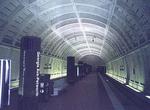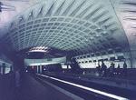 Anacostia. This former terminus of the Green line is here at Anacostia, on the other side of the Anacostia River, near the intersection of Howard Road SE and Shannon Place SE. This is the first station serving the Southeast community (Capitol Heights, three miles northeast, is on the border of the two district divisions). For all intents and purposes, it is an underground station, but there is a difference - there's a building sitting on top of it. If this building were removed, the station would be in an open cut. The aforementioned building houses the station entrances and parking garage, which has 808 all-day spaces plus 325 metered spots. There is a station entrance at either end of the island platform. The walls of the station are not vaulted - they have a simple, smooth concrete finish. The ceiling is unique - round vaults run perpendicular to the tracks, and the effect is as if you had cut concrete pipes in half and set them into the ceiling. The vaults are also lined with acoustic panels. This station had to circumvent a number of difficulties associated with its location and construction - a couple of local roads, a freeway and the water table of the Anacostia River - a very complex planning and construction job was accomplished here. Anacostia station opened December 28, 1991.