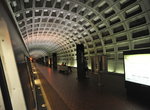 Virginia Square-GMU. The next stop is Virginia Square-GMU. The 'GMU' stands for George Mason University, whose campus is right nearby. The station entrance is at Fairfax Drive and North Monroe Street, right in a cluster of office buildings. The station itself runs from North Lincoln to North Nelson Streets, and is identical to Clarendon - two side platforms, waffle architecture and no platform pylons. The entrance pod is just west of station center. Just to the west, the subway veers off to the right, following a curve in Fairfax Drive. Virginia Square-GMU station opened December 1, 1979.