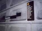 Clarendon. Clarendon station comes next. This station features two side platforms and waffle architecture. Like Farragut West, there are no pylons on the platform - the strip maps are on wall plaques. The single entrance is at Wilson Boulevard and N.Highland Street, in the center of what used to be Arlington's shopping district. The station itself is located just south of Wilson Boulevard and just west of N. Highland Street. It is a mix of commercial and residential now, with some new buildings replacing the old. The entrance pod is just to the east of the station center. Clarendon station opened December 1, 1979.