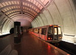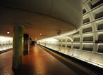 Metro Center station is by far the busiest in the system, with fast-moving crowds milling about in the rush hour. Watch your step and stay alert here - this is not for the squeamish or slow of foot. There are plenty of escalators in operation between the two levels, but those who stop to gaze at this massive station's beauty can be swept along by the herd of commuters. Best views are from the upper level, just outside of the Red line platforms. This station is a 'must-see' sight, not only for train and subway buffs, but for ordinary tourists as well. Metro Center station upper level opened March 27, 1976.