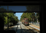 Train of cars 380 and 351 stop at South Terrace inbound, at the beginning of the Glenelg Line's private right-of-way. 351 and 380 were the first and the last of the 30 H-Class cars. Photo by Peter Ehrlich.