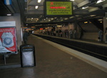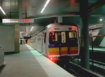 West End. The West End station is elevated with two side platforms surrounding two tracks. The roof of the station is steel and there are skylights with no glass over portions of the track. All the stairs down to the lower level have dark red tiles on the walls. Other portions of walls have orange tile on them. The columns supporting the platform are concrete. Lower level mezzanine is as wide and long as the whole platforms above, it's very spacious. There is a bus to rail transfer area and station entrances in the lower level. The West End station opened on September 11, 1982.
