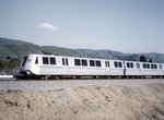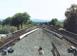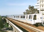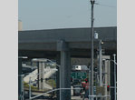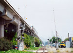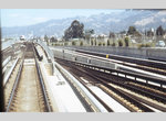 Leaving Walnut Creek, the elevated concrete structure heads northeast to Pleasant Hill, another side platform structure. Returning to grade level, the right-of-way is nearly on the alignment of the Sacramento Northern, an interurban line built a century ago and abandoned in the 1940s. The Concord Yard is east of the right-of-way at this point.