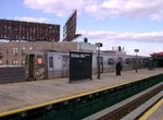 NW Two tracks and an island platform, partially located under the Hell Gate Bridge. In an odd layout, the station has a canopy for the portion under the bridge! The mezzanine has twin fare controls, with double wide stairs. There is a pedestrian bridge to the adjacent Garry Building's second floor. A view from the platform reveals a painted mural on the east wall of the bridge entitled Americana.