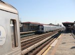 The BMT used rebuilt el cars which were of IRT width on the Astoria line. (Prior to 1942, IRT trains ran from South Ferry via the Second Avenue El across the Queensborough Bridge. The # 3 ran to Astoria and the # 4 to Corona.) After the closure of the Second Avenue El, the # 8 train was on the Astoria Line until 1949 when the BMT took over the Astoria Line. In 1949, it was decided to extend the BMT Subway trains to Astoria and discontinue the joint operation. The Astoria line became BMT-only. A new connection was provided from the 60th St. Tunnel to the former Second Avenue portion of the IRT station, and the platforms were cut back there and along the Astoria Line. The entire north half of Queensborough Plaza Station was abandoned in October 1949, along with most of the flying junction. Disused trackways can be seen descending to the former lower level along both existing lines, but the active trackways are those of the original IRT. The abandoned North half of Queensborough Plaza was torn down in 1964. One set of crossovers remains on the upper level as the Flushing Line's only connection to the rest of the system.