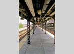 The 1998-1999 renovation converted Park Place from an island platform station to a side platform station with a single track on its west face. Riding a train northbound, the two tracks merge with just the original northbound track remaining. The line is single-tracked from here to Franklin Avenue. The structure for a second track remains in place. The south end of the new single platform features a platform level fare control with sodium lights and windows. The mezzanine features the same three colors introduced at Botanic Gardens. There are bright fluorescent lights on the platform which has no windscreen. There are 5-foot ornamental wrought iron railings, and a chain link fence behind. The fence protects the street crossing underneath the south end of the platform. The north end of the station has a unique feature for the subway-- ramps to the street. The ramp features a pleasant ornamental iron railing and lead to the emergency room of Interfaith Hospital. A stairway is also present.