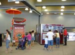 The lobby area has the fare control turnstiles plus gates which are opened at times of peak traffic. There are ramps from the lobby to the bus lanes at the Mermaid Avenue end of the station. There is an old-style wooden token booth still used at this station at times of peak traffic.