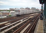 Service patterns over this stretch of El varied through the years; however, a constant that ran into the 1980s was that trains terminating at Kings Highway ran local on the Culver El during rush hours and trains terminating at Coney Island ran express between 18th Ave. and Kings Highway during rush hours, a practice dating back to the 5th Ave. El and the lack of enough steel subway cars for the 4th Avenue subway! In the early 1990s, the double crossover just south of Kings Highway enabling trains from Coney Island to switch to the express track was removed and now all F trains now run local on the Culver line. Some trains still terminate at Kings Highway in the evening rush hour.