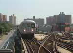 Another excellent place for photos is West 8th Street from the street. Specifically, a perch on the pedestrian bridge leading to the New York Aquarium right over Surf Avenue gives you the opportunity to photograph Brighton Line trains leaving at the top of a double-El structure, and Culver Line trains from the lower level of the structure.