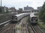 Other than Stillwell Avenue, the Sea Beach Line doesn't have much going for it in terms of photo opportunities. As far as a ride from the head end goes, it falls somewhere between a ride on a true elevated and a ride underground. If done at night, there's really nothing to see at all. Going for it however is the run through the Coney Island yards, but even that over the years has had some of its glimmer taken away, as car washes now sit directly next to the tracks, impeding the view of the yards themselves. There is a photo op at the Eighth Avenue station from the crossover at the Seventh Avenue end. Other ops are at the road crossings of the line at every avenue. However, in some places, due to recent rebuilding of the LIRR overpasses, the new crash walls are too high too see over.