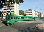 A number of classic Duewag articulated cars can be seen in use, although appearances in passenger-carrying service seem a little sporadic. When they do perform as such, they seem to operate as two units coupled together - single units are popular as training cars, however. Some have apparently already been sold to the Sarajevo tramway in Bosnia, and given the good condition the remaining units are in it would seem that they too will see further use elsewhere after retirement from Basel.