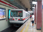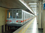 The BD1 (Line 2) and BD2 (Line 1) cars arrived from the Beijing Subway Rolling Stock Plant in the early 1990s. “BD” in these designations refers to “beijing ditie”, or “Beijing Subway.” The ends of these cars are similar to the earlier DK11 and DK16s, but they feature sloping car sides and four doors per car (three on the previous stock.) These cars were the first to feature AC propulsion. All of these cars have been repainted with the new silver paint scheme.