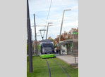 The EuskoTran ("Basque Tram") was proposed in 1998 after the opening of the Guggenheim Museum on the Nervión River waterfront. The chosen route connects two rail stations, and along the way passes the Guggenheim museum and an exposition center. Construction began in 1999 and the line opened near the end of 2002. The meter-gauge line is approximately 5 km long, with approximately 2 km of single track east of Pío Baroja to the eastern terminus at Atxuri railway station. Rolling stock, built by the Basque region's own C.A.F., consists of eight 24m long low-floor trams, with capacity for 192 passengers each, built at a total cost of EUR 18 million. The trams are numbered 401 to 408. The depot is located east of Atxuri station. Tram stops/locations pictured: Abando, Pío Baroja, Uribitarte, Guggenheim.