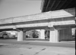 As Washington Street veers to the West, a substantial offset occurs between the road alignment and the rail alignment giving rise to very asymmetrical loading conditions. These are marked by a series of special transverse bents some with cantilevers and some with a hybrid truss - plate girder form of construction.